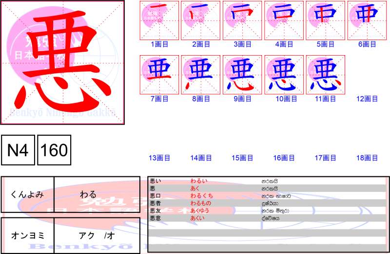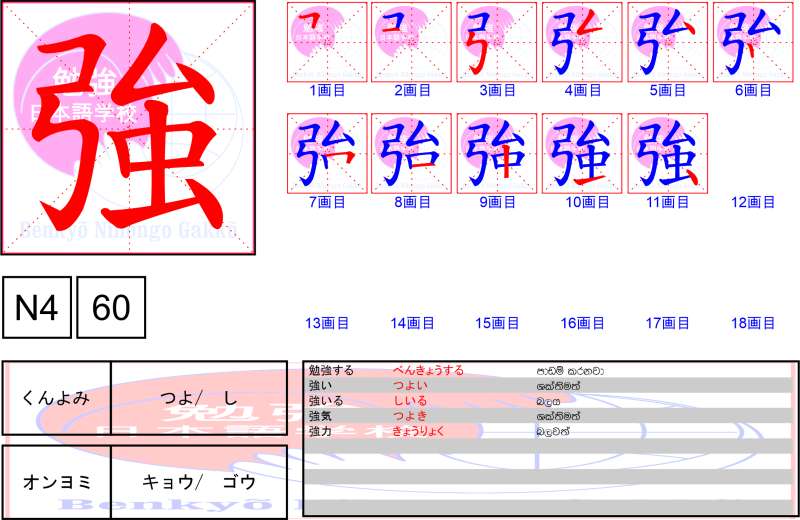 Unicode – U+5F37 JLPT Level – N4 Strokes – 11 △強ち(あなが-ち) 〈強盗〉頭巾(がんどうズキン) 強圧(キョウアツ) 強化(キョウカ) 強▲諫(キョウカン) 強幹弱枝(キョウカンジャクシ) 強記(キョウキ) 強▲禦(キョウギョ) 強肩(キョウケン) 強健(キョウケン) 強権(キョウケン) 強固(キョウコ) 強行(キョウコウ) 強攻(キョウコウ) 強硬・強梗(キョウコウ) 強豪・強剛(キョウゴウ) 強行軍(キョウコウグン) 強襲(キョウシュウ) 強将の下に弱兵なし(キョウショウのもとにジャクヘイなし) 強▲靱(キョウジン) 強制(キョウセイ) 強請(キョウセイ) 強壮(キョウソウ) 強大(キョウダイ) 強調(キョウチョウ) 強敵(キョウテキ) 強迫(キョウハク) 強迫観念(キョウハクカンネン) 強風(キョウフウ) 強弁(キョウベン) 強暴(キョウボウ) 強要(キョウヨウ) 強力(キョウリョク) […]